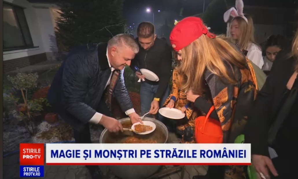 Pentru extremiștii din Buftea, să explicăm că Halloween este o sărbătoare importată de la americanii idolului lor, Trump, adorată de copiii care colindă din case în case și primesc dulciuri. Priamarul nostru a participat și el, dar i-a tratat românește.