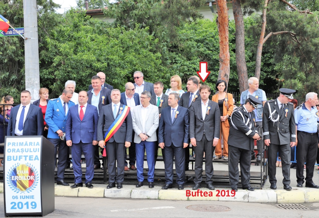 Foto jos 2019, când Petrache și Pistol l-au scos pentru prima oară in față pe Hubert Thuma, la o paradă la Buftea, după ce anii trecuți era în spate. In 2019 s-a făcut transferul și l-au adus în față, foto ținând de colivă, alături de primarul Pistol din Buftea, Marian Petrache, presedintele CJ Ilfov și cei doi vicepreședinți. Aici Thuma tocmai fusese pus președinte PNL Ilfov.